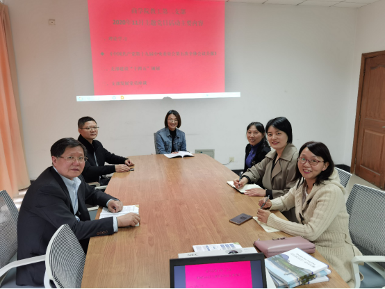 教工第二支部在北校区商学楼A308A办公室开展2020年11月主题党日活动,会议由支部书记陈文芝老师主持。此次会议的主要内容包括理论学习和支部发展党员工作两个方面。