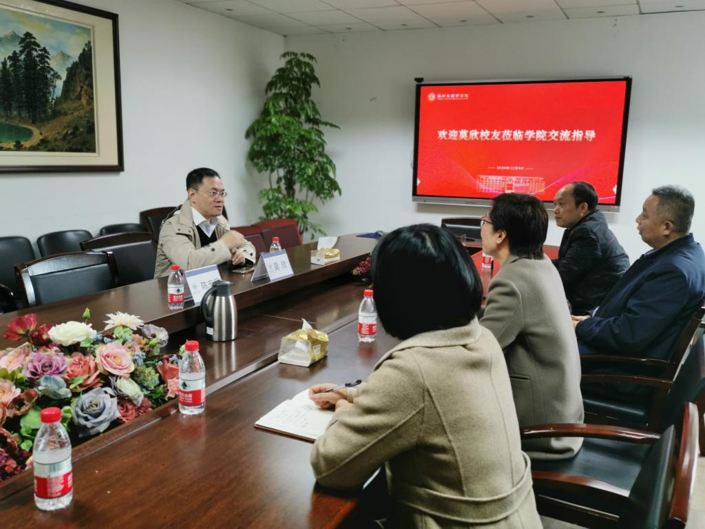 校友会副会长、90国贸莫欣校友来院交流指导,院长胡振华、党委书记郑彩莲、副书记唐华、办公室主任张素琴予以接待,双方在信息楼A222会议室展开座谈,并走访参观了考研自习室样板间、澳门六合彩开奖现场直播