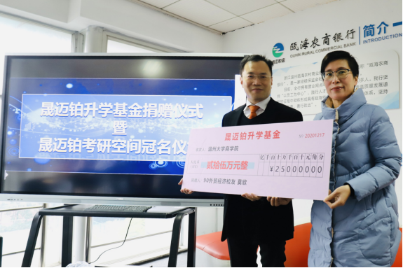校友会副会长、温州晟迈铂贸易有限公司董事长莫欣慷慨捐资二十五万元在澳门六合彩开奖现场直播