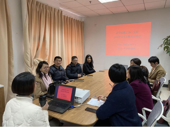 教工第二支部在北校区商学楼A308A办公室开展2020年12月主题党日活动,会议由支部书记陈文芝老师主持,支部党员及国贸系教师参加。此次会议的主要内容包括课程建设分享、温州大学优秀教师、优秀党员、优秀(教育)工作者、抗疫先进个人推选、党员民主评议、理论学习及支部工作年度总结。