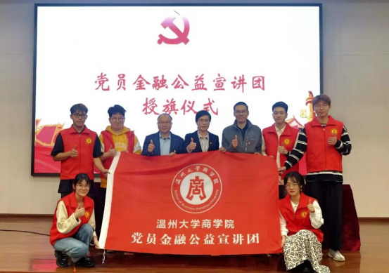 拟重点打造的党建品牌“党员金融公益宣讲团”项目。该项目基于当前各类金融陷阱层出不穷,严重侵犯大学生的合法权益的现实背景和党史学习教育“为群众办实事”具体要求,结合我院的学科特色,以现有的团队、专业、平台为支撑,准备集中优秀学生党员力量,深入开展各类金融公益宣讲服务,为建党100周年贡献商院力量。会上,院领导为党员金融公益宣讲团师生代表授旗。
