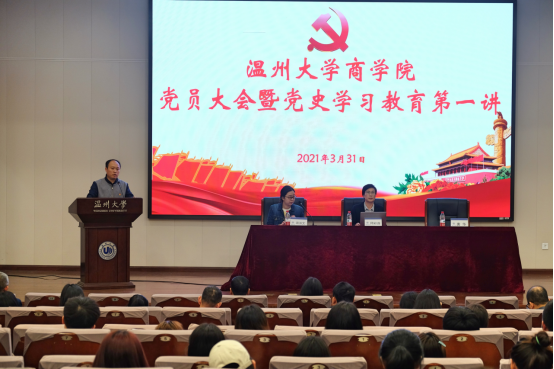 党委在北校区信息楼报告厅召开全体党员大会,并正式启动党史学习教育第一讲。