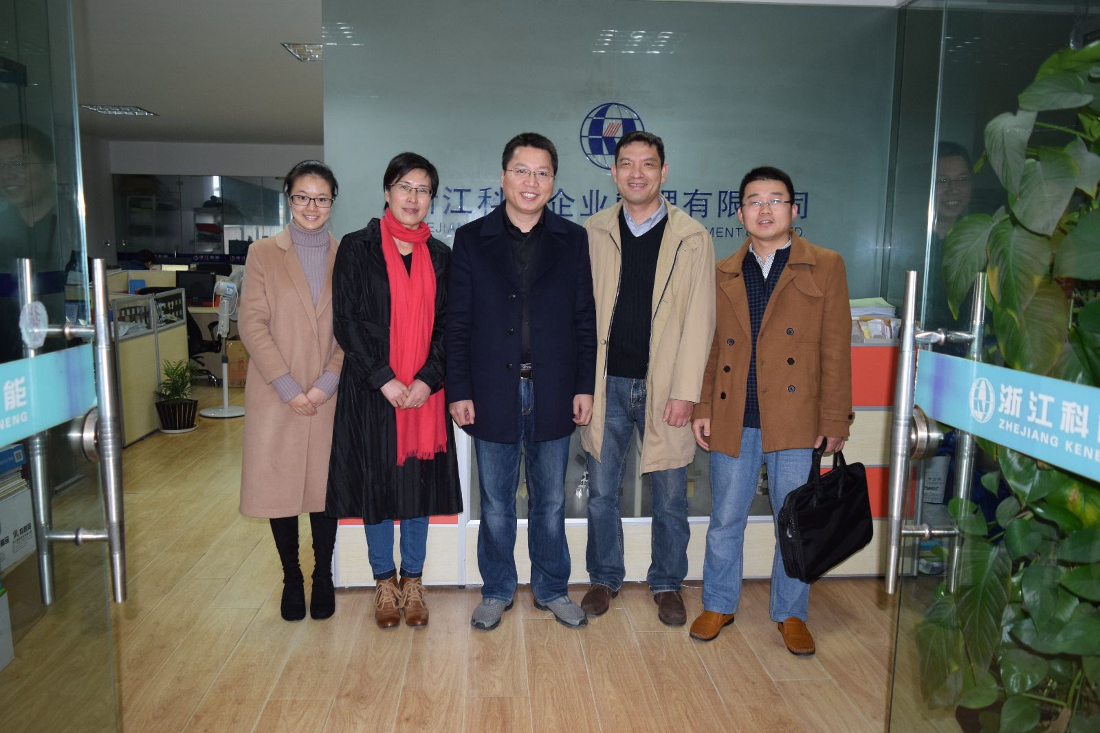 2015年12月4日下午,我院党总支书记郑彩莲携张一力教授、白延虎老师及两名研究生共赴浙江科能企业管理有限公司看望本院优秀校友叶剑淼总经理。叶总经理对我院领导、老师的到来表示热烈欢迎,并带领老师和同学们参观公司内部、了解公司发展历程。
