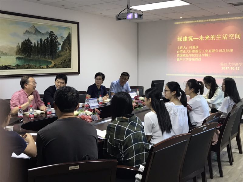 最后,何博士就发问的同学提出的温州大拆大建与绿色建筑、台湾建筑发展简史给与细致耐心的见解,对温州问题给出了自己的看法并请同学建议并指教。同学们纷纷被这个朴实严谨、经世博学的“富二代”所感染,不仅明白了自己生存的建筑变得更加的节能环保的技巧、更明确了自己身上的责任担当,立志做一个于国于家有用之才,回报社会。