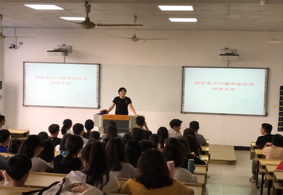 国贸系2019届毕业论文动员大会在北3-201教室顺利召开。本次动员大会由国贸系马媛老师主持,15国贸本和17国贸专升本班级的学生参加了本次大会。