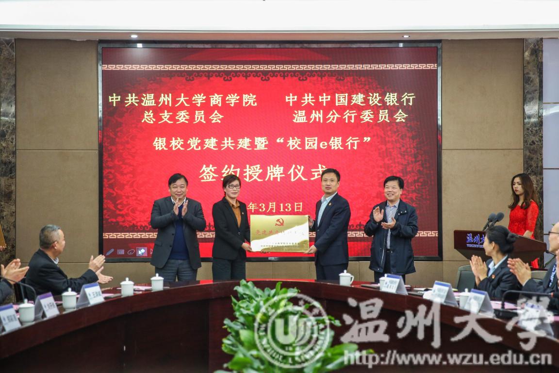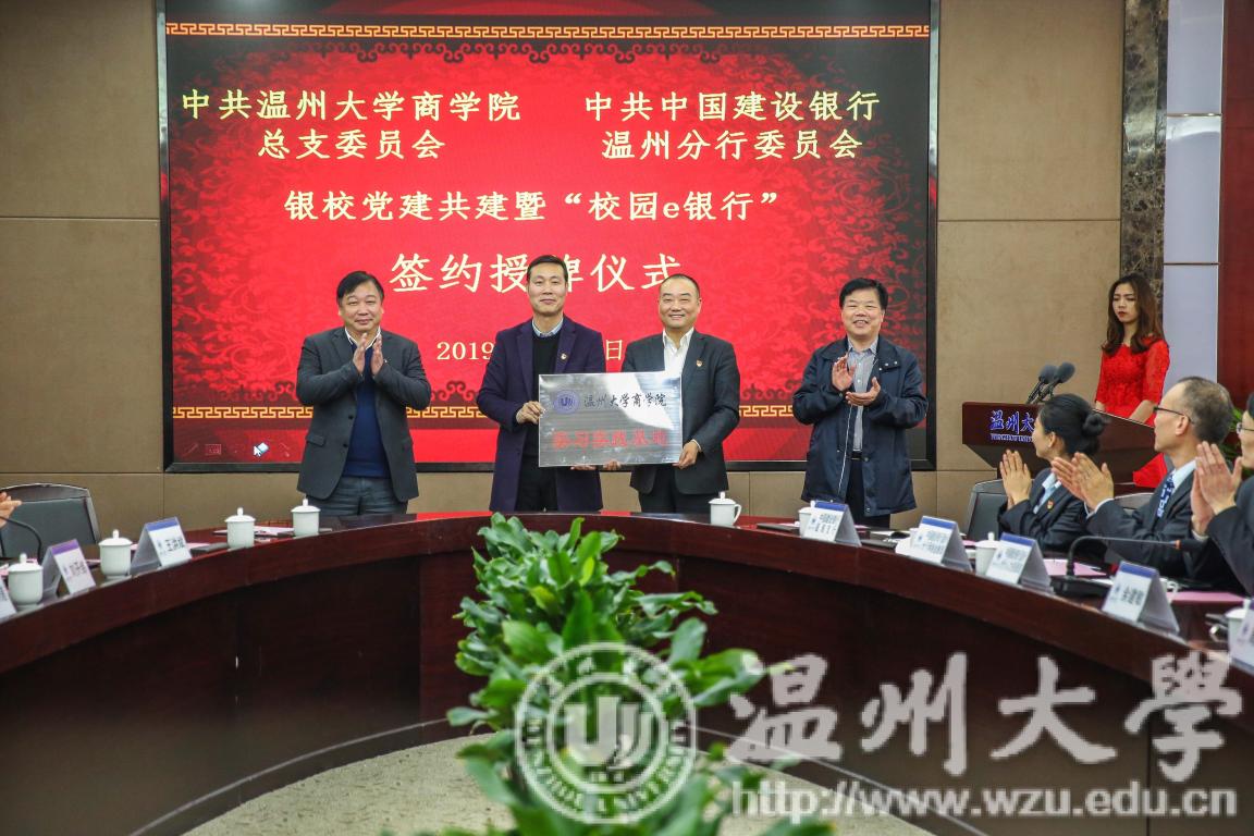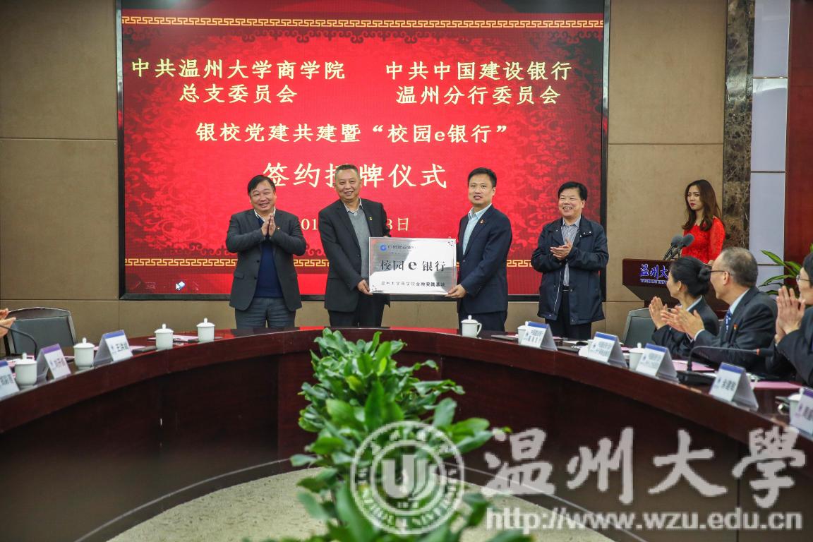 与建设银行温州分行在南校白鹿厅举行银校共建暨“校园e银行”签约授牌仪式。