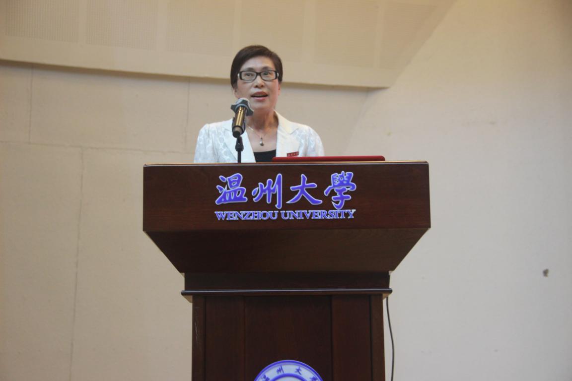 典礼在生动的商院介绍视频和庄严肃穆的奏唱国歌仪式中正式拉开了序幕。院党委书记郑彩莲为新生做《不努力,就出局》的开学致辞。她指出,一代人有一代人的使命,一届学生有一届学生的使命,希望同学们在温大求学期间,抱定宗旨,学好专业知识长好本领光大国族造福人群。郑书记用轻快活泼的语言和内容表达出“不努力,就出局!”的命题,她希望同学们讲规矩定戒律,讲修身,担使命,乐观开朗,紧握新时代中国特色社会主义大格局。她不时的肢体语言和生动的语气让同学们时不时地捧腹大笑,引发深深地共鸣。