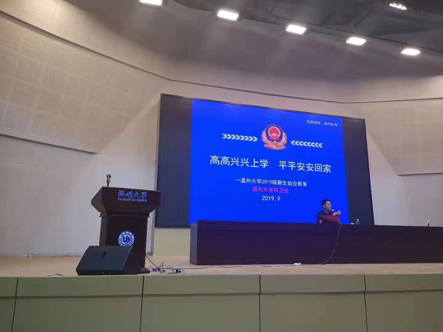 2019级新生始业教育系列内容在在南校区溯初堂有序进行。本次始业教育邀请温州大学校卫处副处长钱合激、瓯海农商银行行长助理季胜娟为我院新生分别开展新生安全教育讲座和防诈骗金融知识教育讲座。