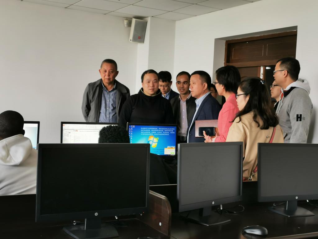 海归博士徐正老师正在金融工程虚拟仿真实验室给留学生上课。谢树华书记驻足与徐正老师亲切交流,了解澳门六合彩开奖现场直播