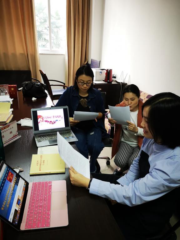 教工第六党支部(国际教学部)成员在A227办公室举行一周一次的学习会。