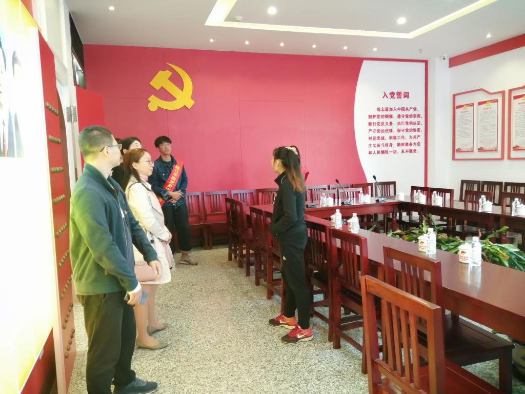 “欧江红”党群服务中心,在讲解员的带领下,党员老师们仿佛进入了一座党史博物馆。该基地有三道门分别代表了中国共产党历史上的重要转折点:第一道门是“遵义会议会址门”;第二道门是“中共七大会址”;第三道门“天安门城门”。这代表了中国共产党发展历程中至关重要的三个时刻。“遵义会议”与“中共七大”两扇大门之间,陈列着党史、党章、重大会议等资料。从党的一大到十九大、井冈山会议、遵义会议、西柏坡会议(七届二中全会),所有的影像、文字资料一一俱全。在“中共七大”与“天安门”城门区域,是以嘉兴南湖纪念馆红船精神为主基调的宣传区,在该展示区可以感受“红船精神”。在“天安门”城门的背后,是研讨区。