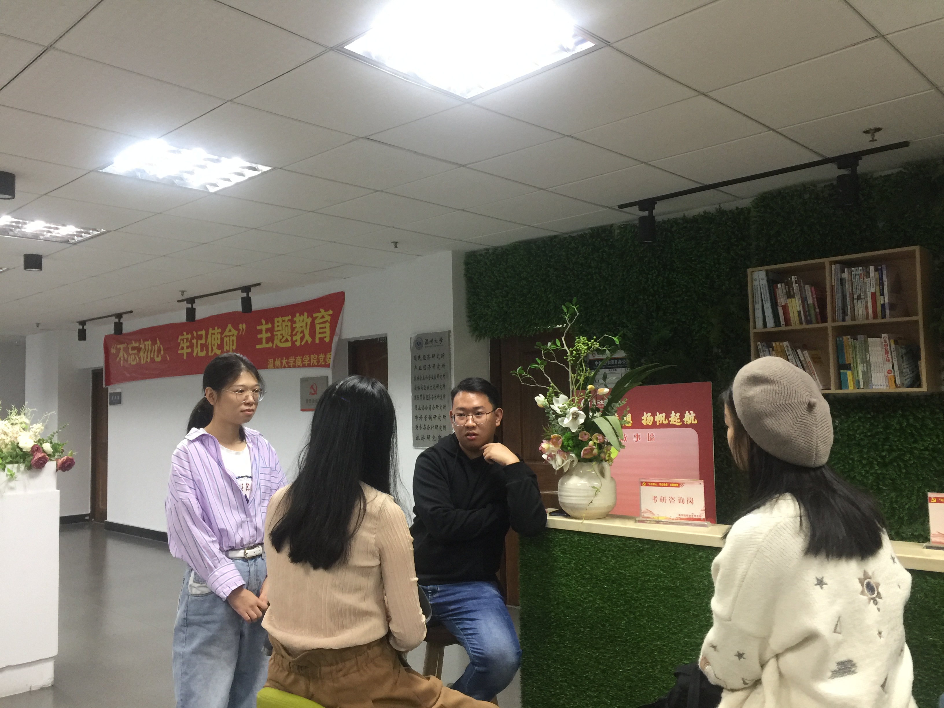 研究生党支部举办了“不忘初心、牢记使命”主题教育活动之“追逐梦想,扬帆起航”考研咨询会。