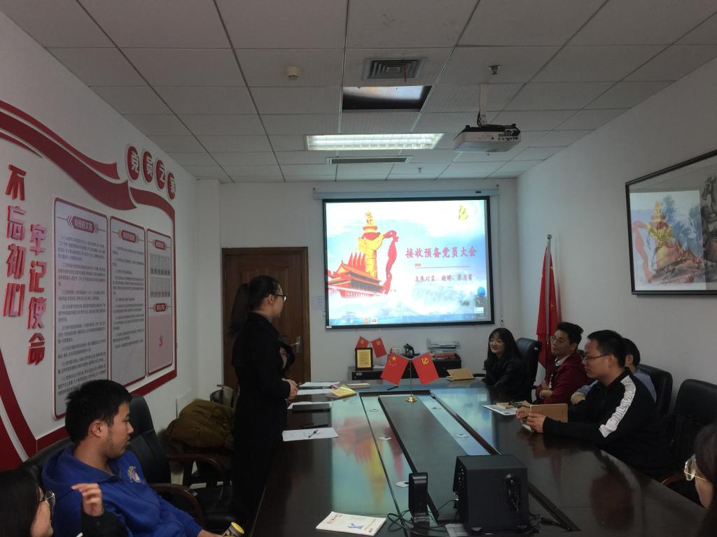 会议一开始,由支部宣传委员梁城超宣读会议流程。发展对象谢娇、张月馨依据《入党志愿书》的内容,分别汇报了自己对党的认识、入党动机、本人履历、现实表现、家庭主要成员和主要社会关系情况。入党介绍人周思雨分别介绍了发展对象的主要情况和对其进行培养教育情况,并对其能否入党表明意见。随后,与会党员发表意见,对发展对象能否入党进行了讨论。党内的同志向发展对象提问有关党员义务和党员权利的问题,并且对发展对象提出了掌握理论知识,积极向党组织靠拢的具体要求。紧接着,发展对象对讨论的情况表明了自己的态度和对大家提的意见的看法及今后的决心。最后,正式党员进行举手表决,本支部党员共12名,本次会议实到正式党员7人,缺席4人,举手表决赞成人数超过应到会有表决权的正式党员的半数,通过接受谢娇、张月馨为预备党员的决议。