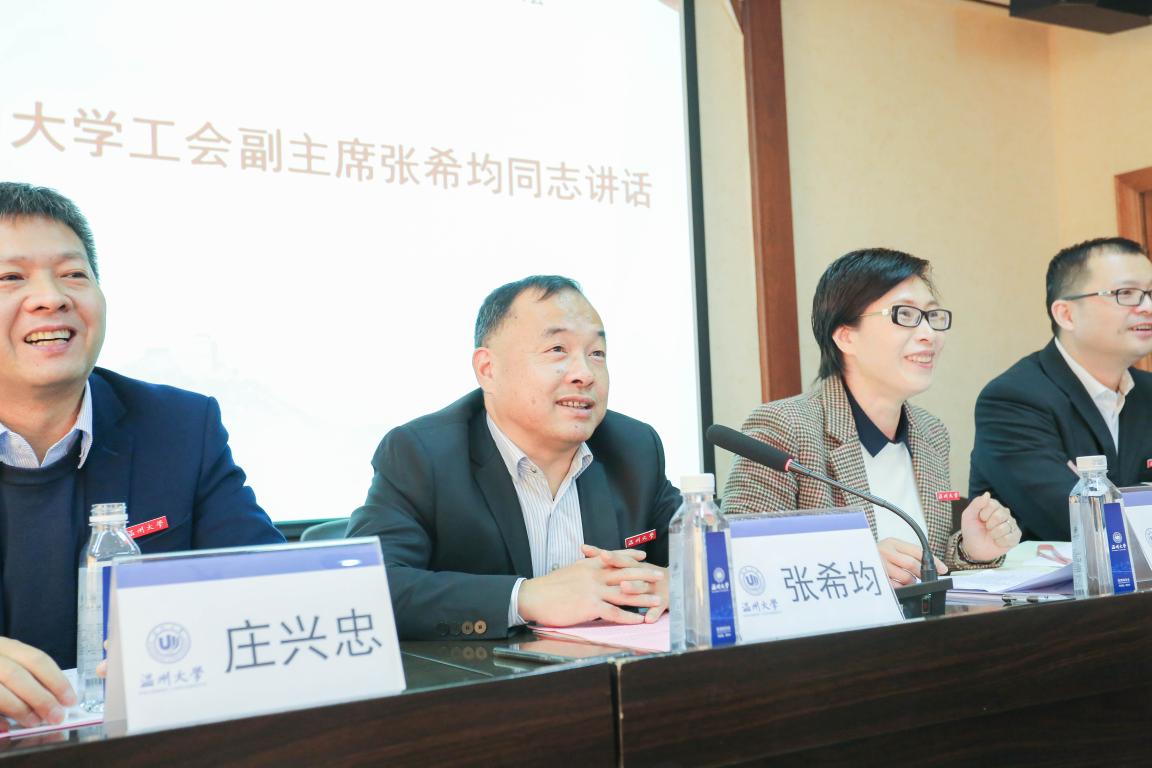 在北信息楼A301室隆重召开第四届教职工暨工会会员大会第一次会议。温州大学党委委员、副书记庄兴忠、校工会常务副主席张希均应邀出席,会议由澳门六合彩开奖现场直播