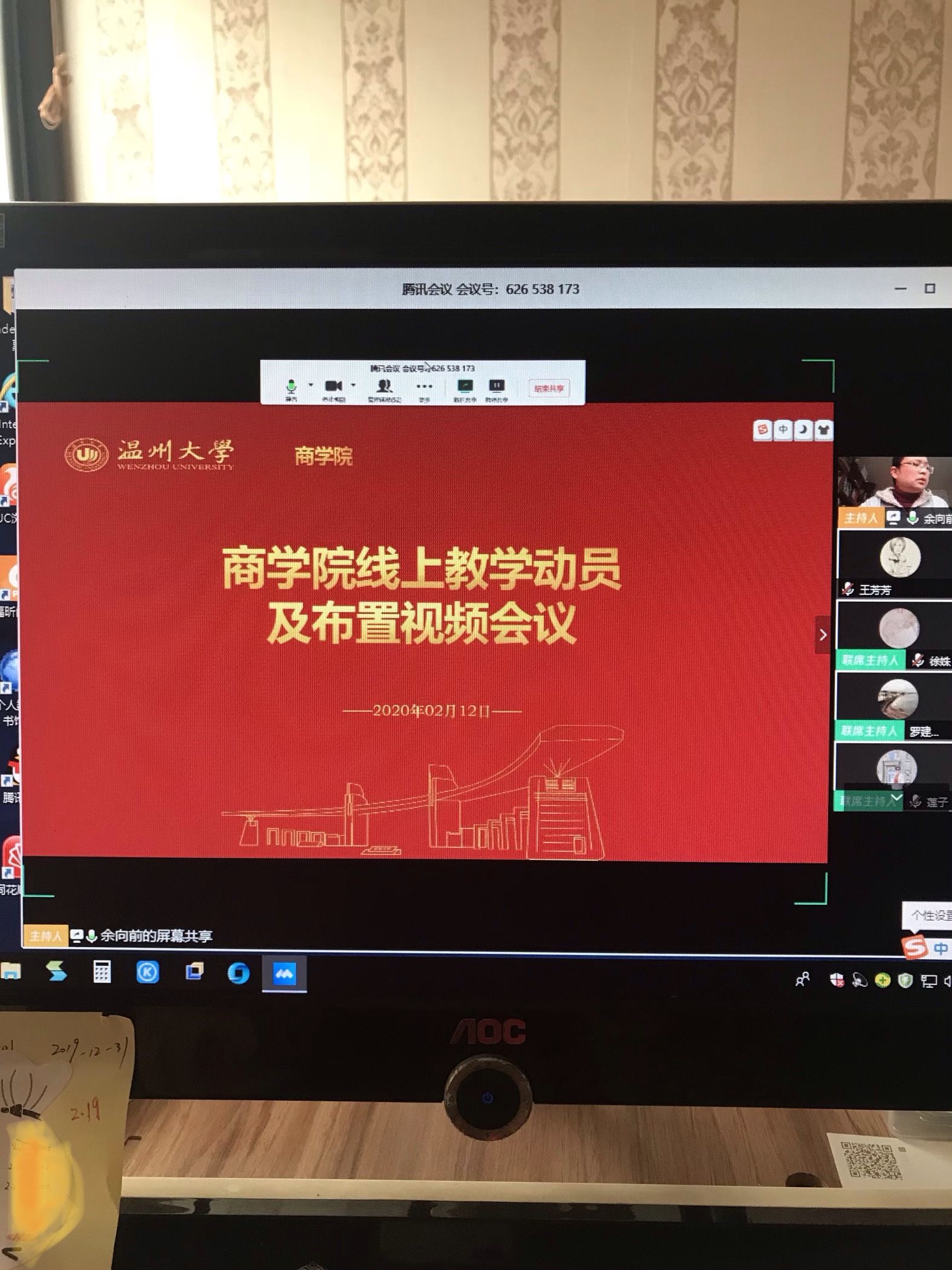 2月12日,我院利用“腾讯会议”召开线上教学工作会议,全体教工参加本次会议。