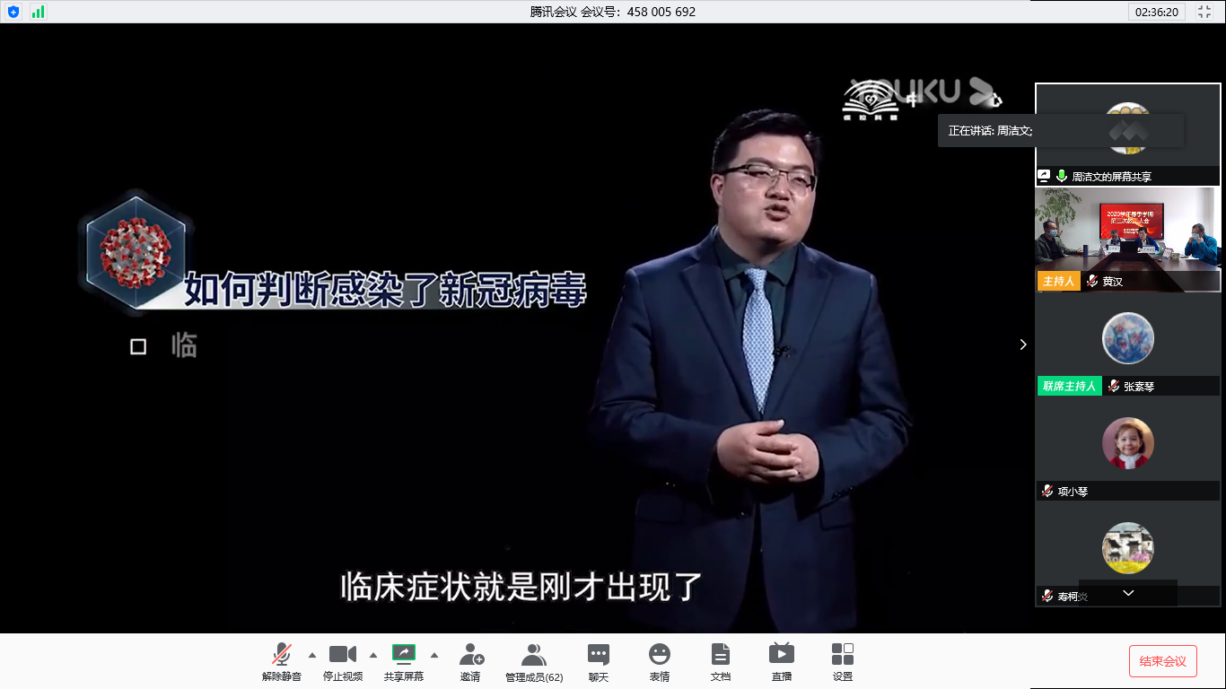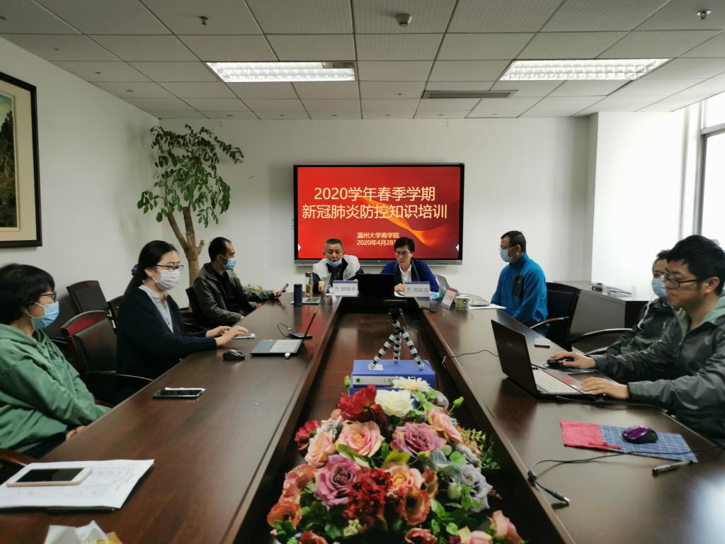 会议第二项议程是新冠肺炎防控知识进行培训。会议播放了视频《教育部学校疫情防控专家报告视频会》,同时在相关工作群发送了学习材料——《温州市高校新冠肺炎疫情防控技术》PPT。