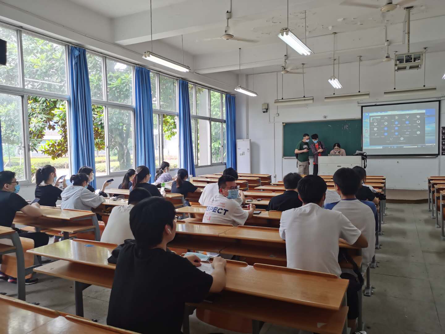 长余向前老师和教学科长徐姝老师到每个教室巡查了上课情况,从开学第一天来看,老师和学生们上课的精神状态都较好,教学秩序井然。在今天的教学巡查过程中,我们发现学生自觉隔排就坐,并戴好口罩。现场教学环节,因为考虑到部分学生没有返校,澳门六合彩开奖现场直播