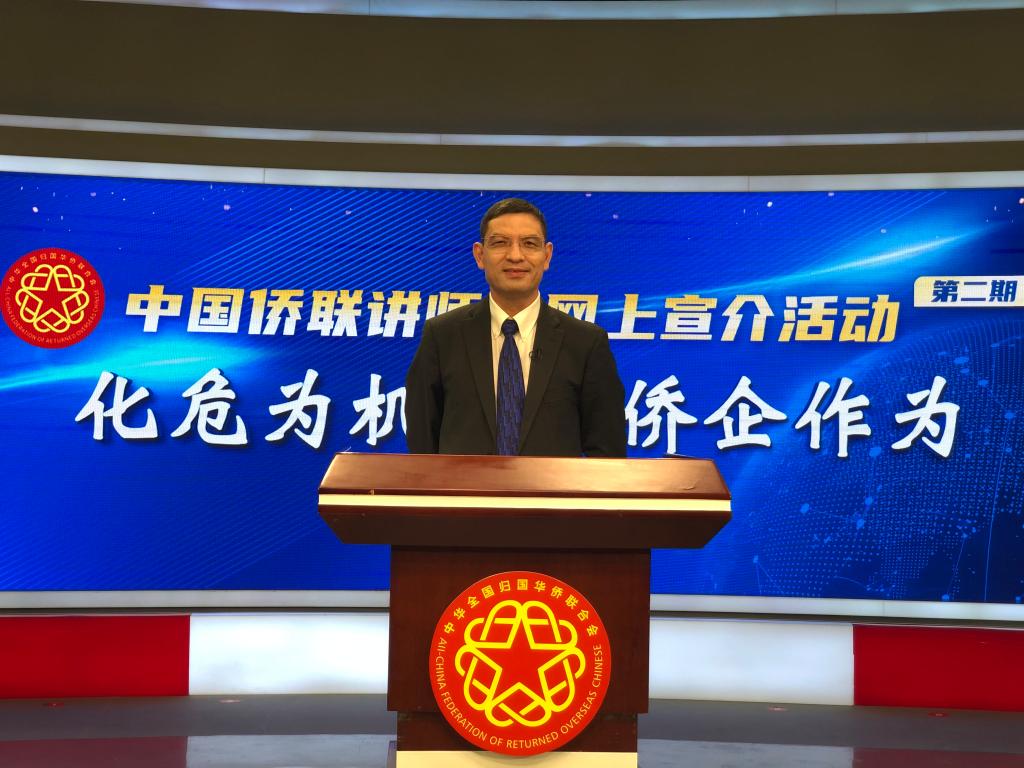 张一力教授以中国侨联讲师团专家身份走进人民网演播厅,并做“化危为机中的侨企作为”的专题演讲。