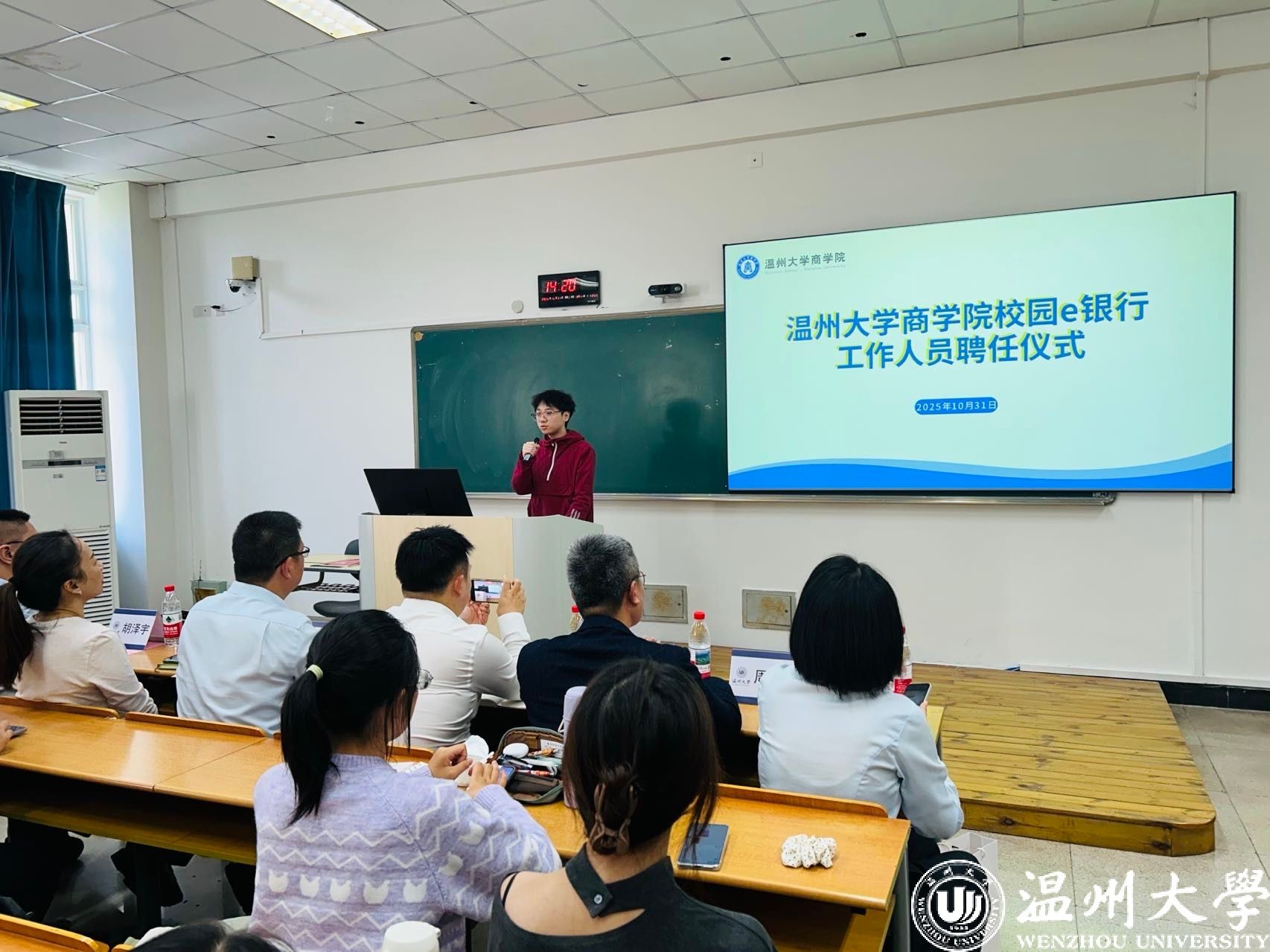 校园e银行新一届工作人员聘任仪式在北校区2-401教室举行。此次仪式融入2025级金融工程专业导论课堂,以“实践育人”为核心,生动展现了澳门六合彩开奖现场直播
