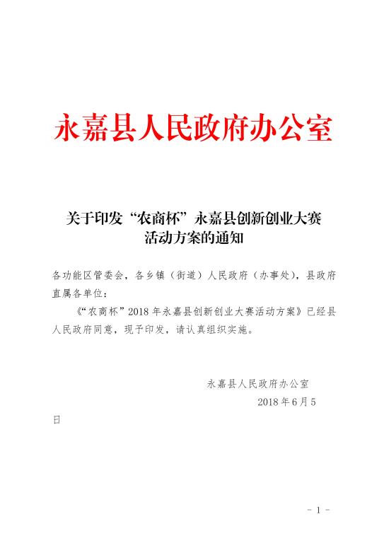 关于印发“农商杯”永嘉县创新创业大赛活动方案的通知